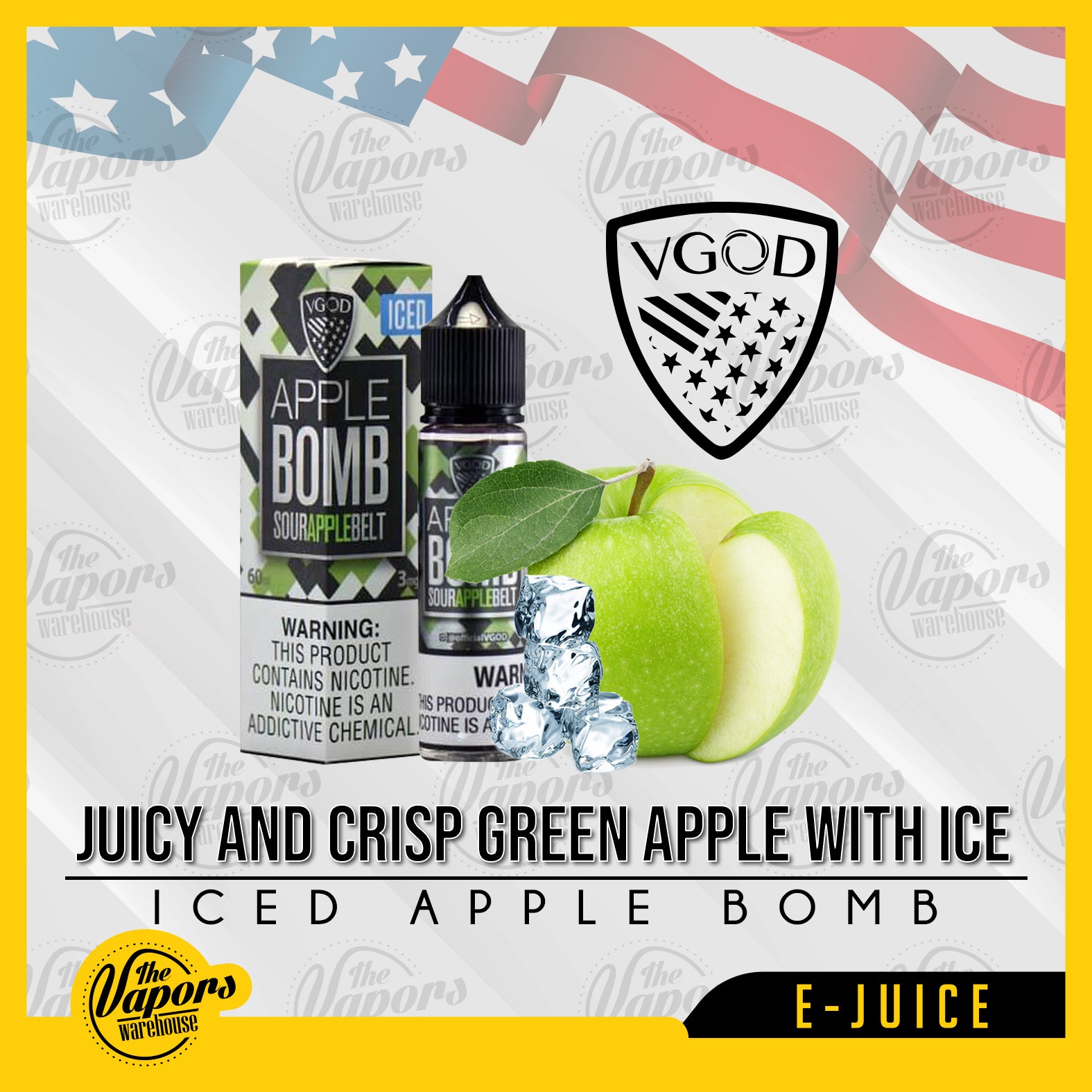 Apple Bomb Iced brings tart sourness from the skin of a Granny Smith apple that hits your taste buds midway right before a mouthwatering surge of savory sweetness with an iced menthol finish